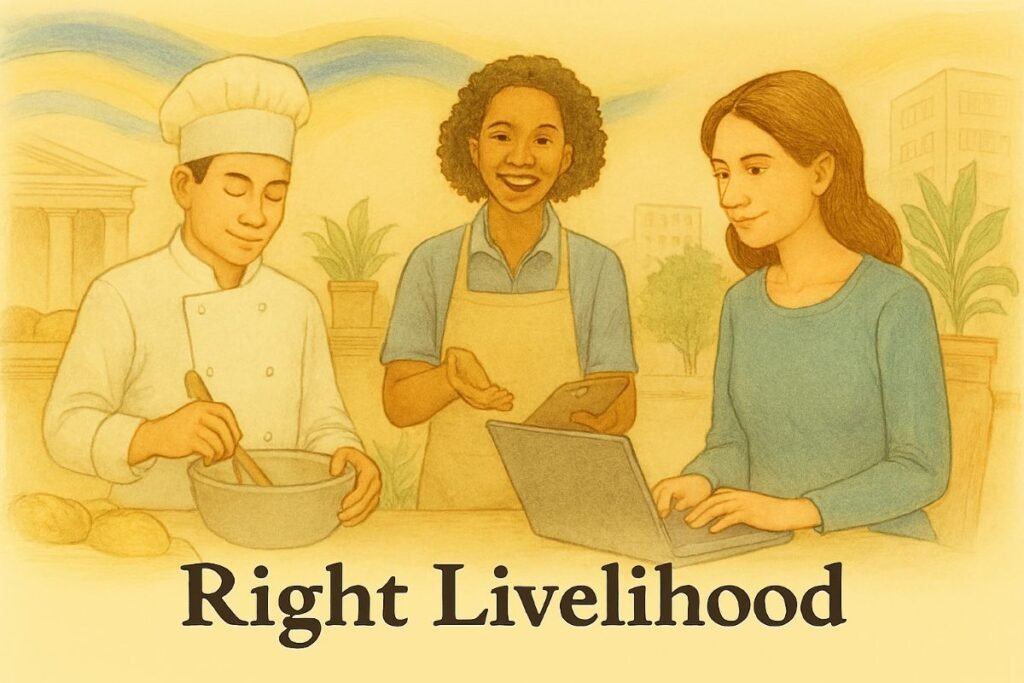 *This guide is intended as an introductory exploration of Right Livelihood. It is based on the core teachings found across Buddhist traditions, particularly the Theravāda sources of the Pali Canon. For deeper study, one is encouraged to read the Buddha’s direct discourses, seek out a qualified teacher, and join a supportive community [Pali: *sangha].